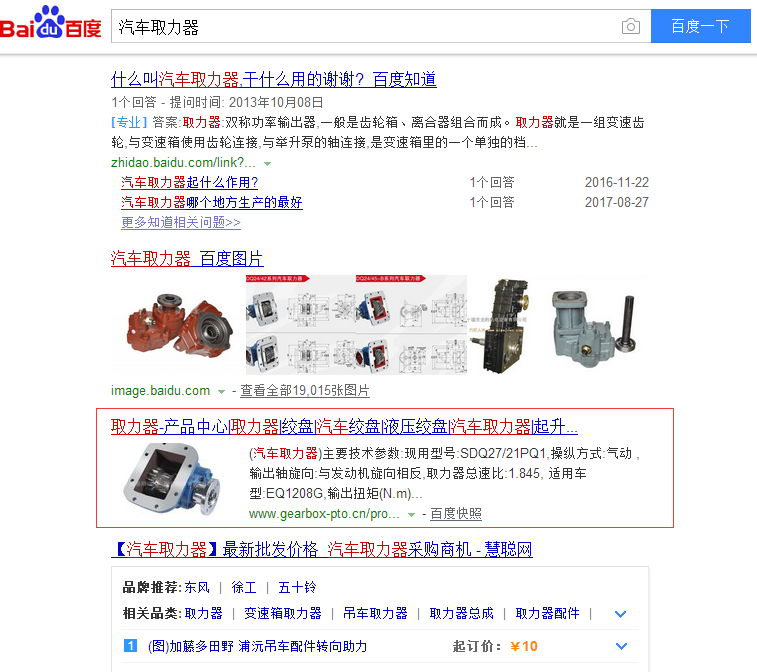 2013年為汽車取力器國家標準起草單位--浙江帕瓦傳動設備有限公司(原嘉善順達汽配有限公司)提供百度SEO服務,網站http://www.gearbox-pto.cn/ ,三個核心關鍵詞“取力器、汽車取力器、液壓絞盤”均做到百度第一頁前幾名。而且更重要的是,三年多來網站幾乎不更新,但關鍵詞排名永遠穩定在百度第一頁,每天帶來眾多詢盤。咱們不吹牛不扯淡,用事實說話,看截圖。實例證明搜客來的SEO技術實力。深圳網站建設,就找搜客來。